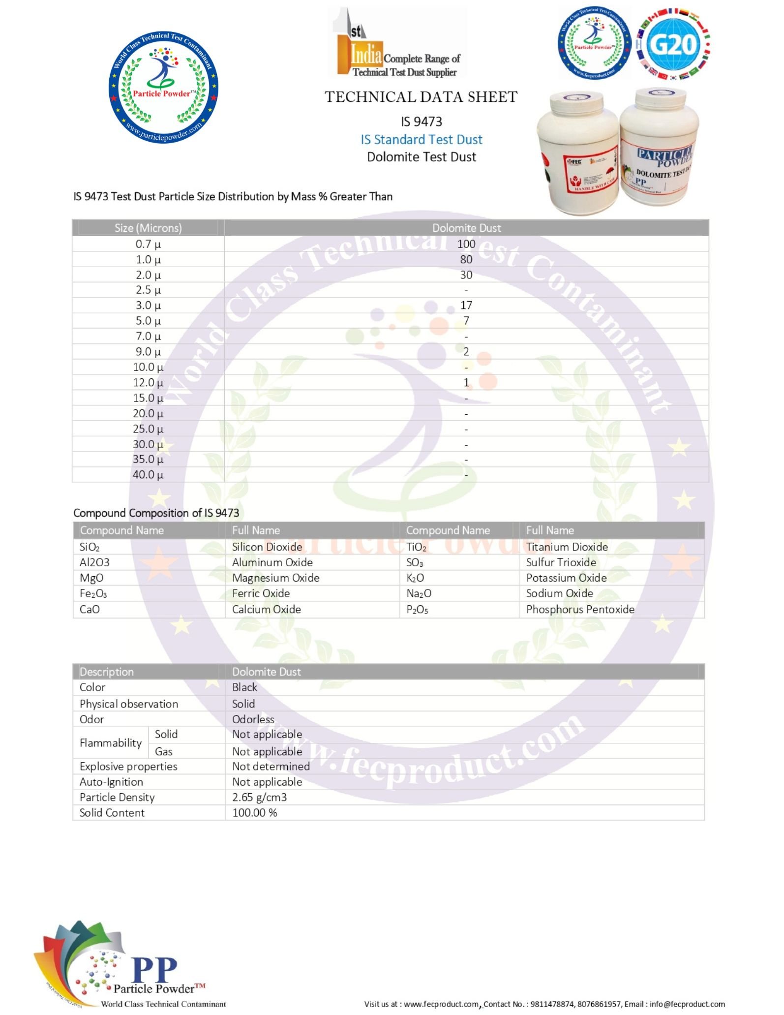 IS 9473 Dolomite Test Contaminant Technical Sheet