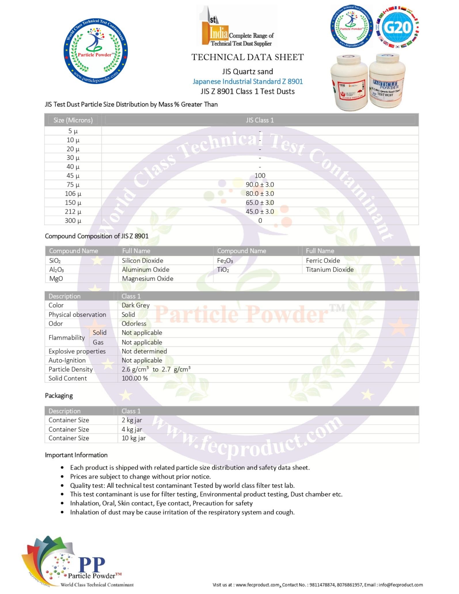 - JIS Z 8901 Class 3 Quartz Sand Technical Sheet