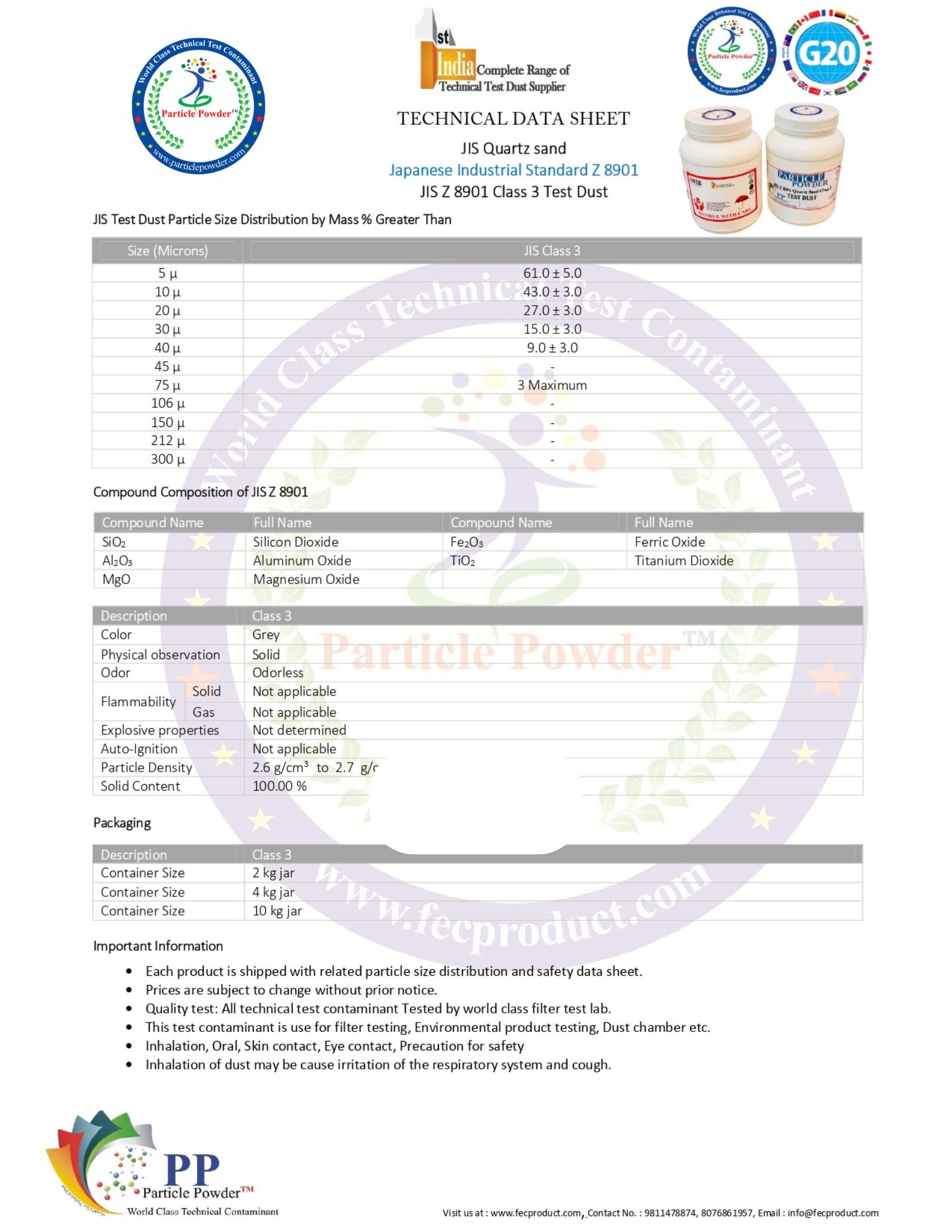 - JIS Z 8901 Class 2 Quartz Sand Techincal Sheet