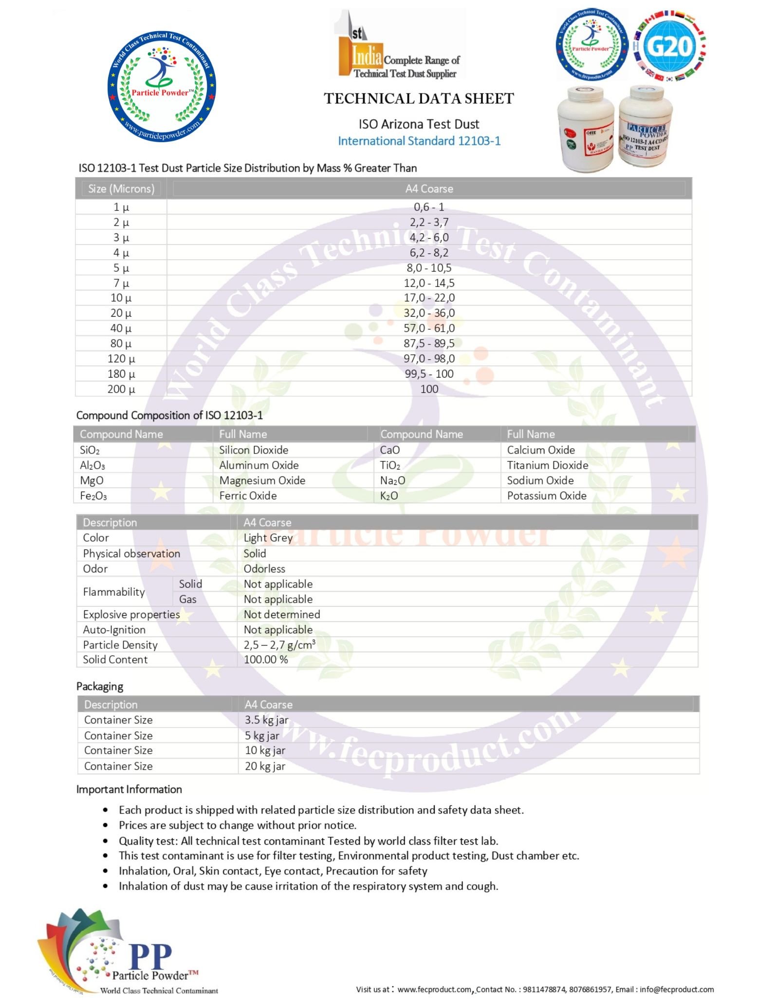 ISO 12103-1 A4 Ultrafine Test Contaminant Technical sheet
