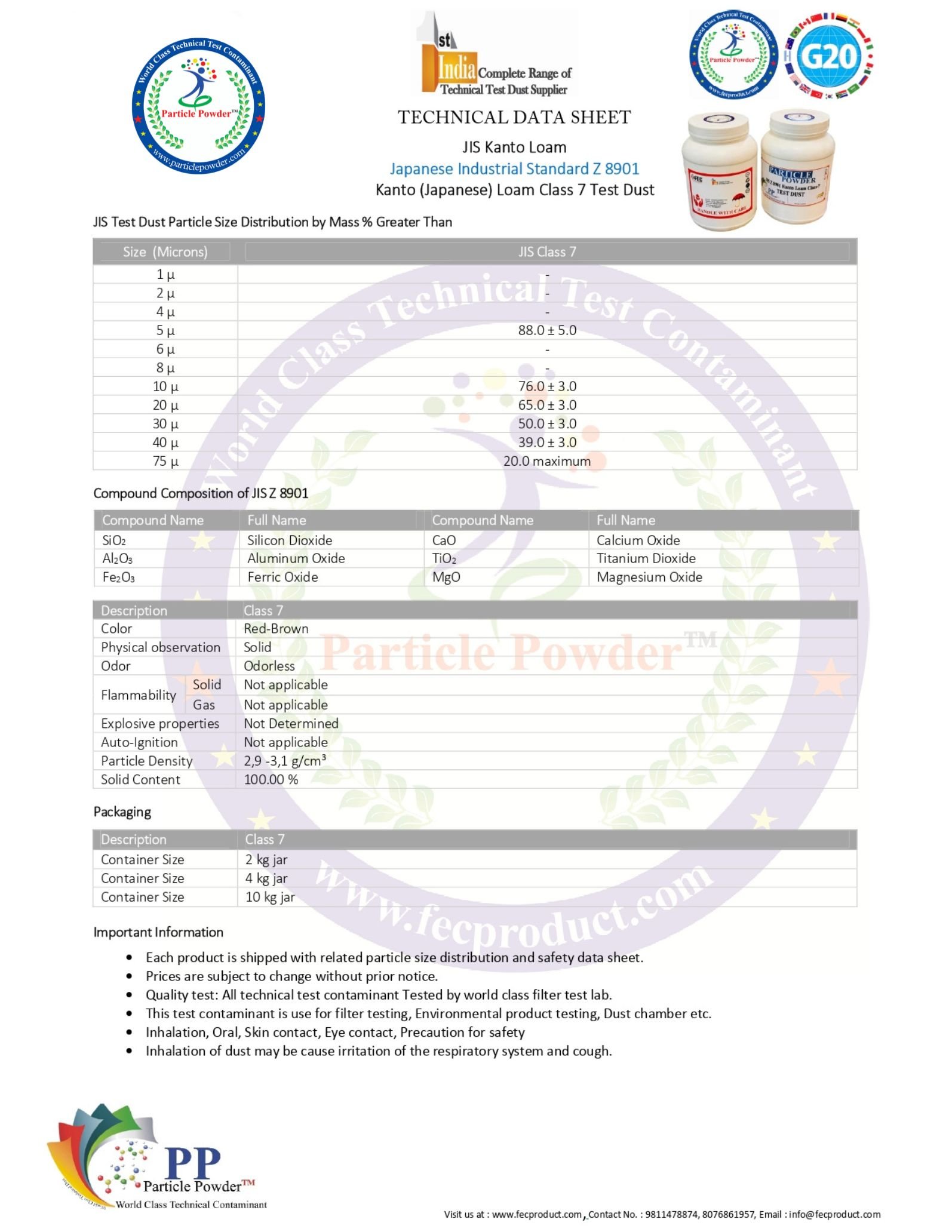 - JIS Z 8901 Class 8 Kanto Loam Technical Sheet